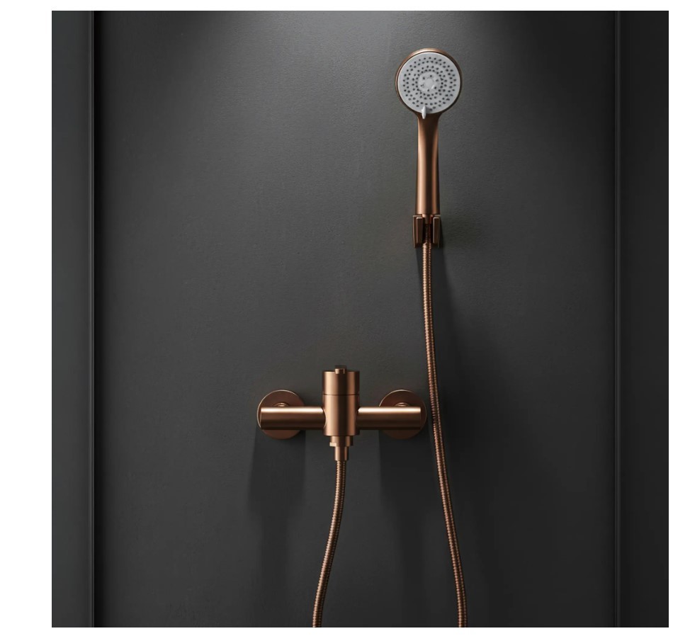Kolor Miedź Szczotkowana – modny, szczotkowany odcień, który nadaje łazience luksusowy i nowoczesny charakter.