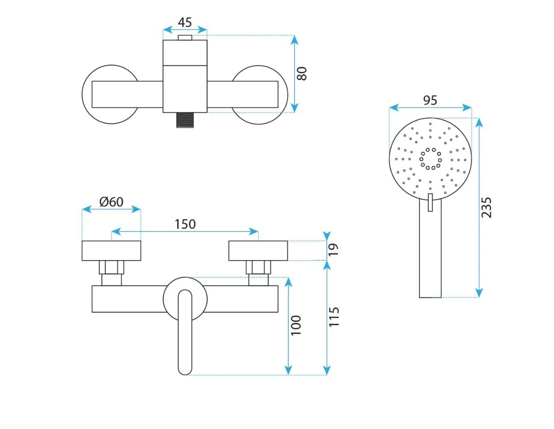 Standardowe wyjście natrysku – dolne przyłącze węża ½ cala, które jest kompatybilne ze standardowymi rozwiązaniami.