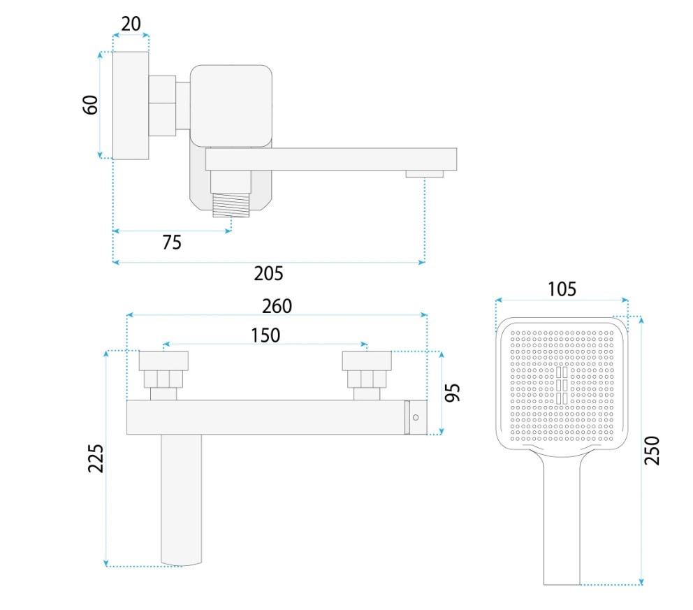 Kompletny zestaw natryskowy – bateria sprzedawana jest w komplecie z wężem, punktowym uchwytem ściennym oraz słuchawką prysznicową.