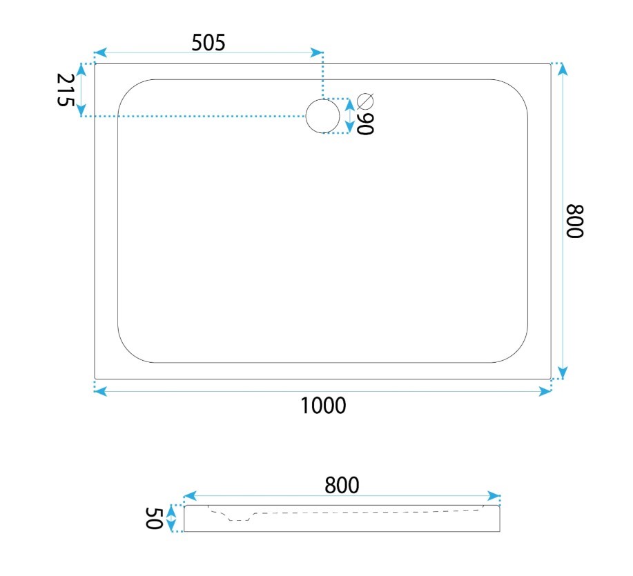 Umiejscowienie odpływu: przy dłuższym boku