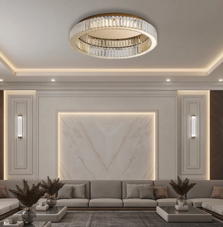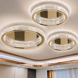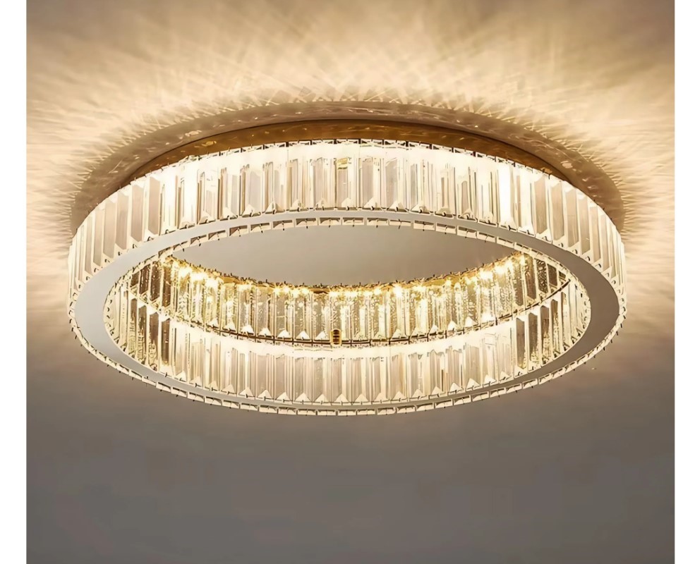 Złoty plafon LED APP1719-C o średnicy 40 cm to elegancka lampa sufitowa z dekoracyjnymi kryształkami, która przyciąga uwagę swoim wykończeniem i wyjątkowym efektem świetlnym.