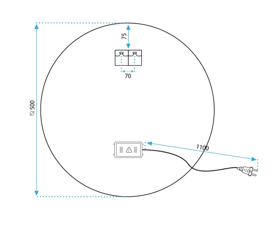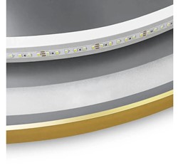 Lustro jest wykonane z najwyższej jakości materiałów, idealnie się prezentuje oraz jest bardzo wytrzymałe. Posiada do wyboru trzy zmieniane dotykowo barwy światła Led – ciepła, neutralną i zimną oraz funkcję podgrzewania zapobiegającą zaparowaniu powierzchni. Przełącznik dotykowy umieszczony w tafli lustra podświetlany jest na niebiesko przy aktywności funkcji. Przewód zasilający w kolorze białym o długości 110cm.