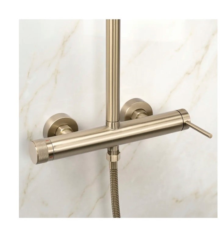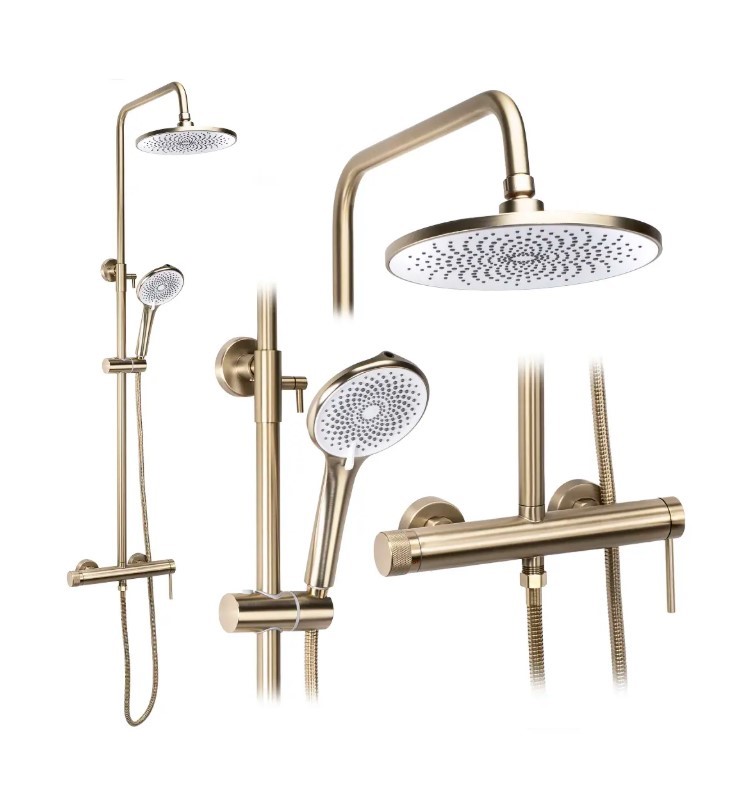 Poszukujesz funkcjonalnego i stylowego rozwiązania do swojej strefy prysznicowej? Sprawdź zestaw prysznicowy natynkowy Rea Foss Clif w nowoczesnym wykończeniu Złoto Szczotkowane. To idealna propozycja dla osób ceniących minimalistyczny design i przemyślane funkcje. Solidny, mosiężny korpus baterii oraz regulowana wysokość deszczownicy zapewniają komfort użytkowania.Kolor Złoto Szczotkowane – estetyczne wykończenie (w technologii PVD), które doskonale komponuje się z nowoczesnymi aranżacjami.