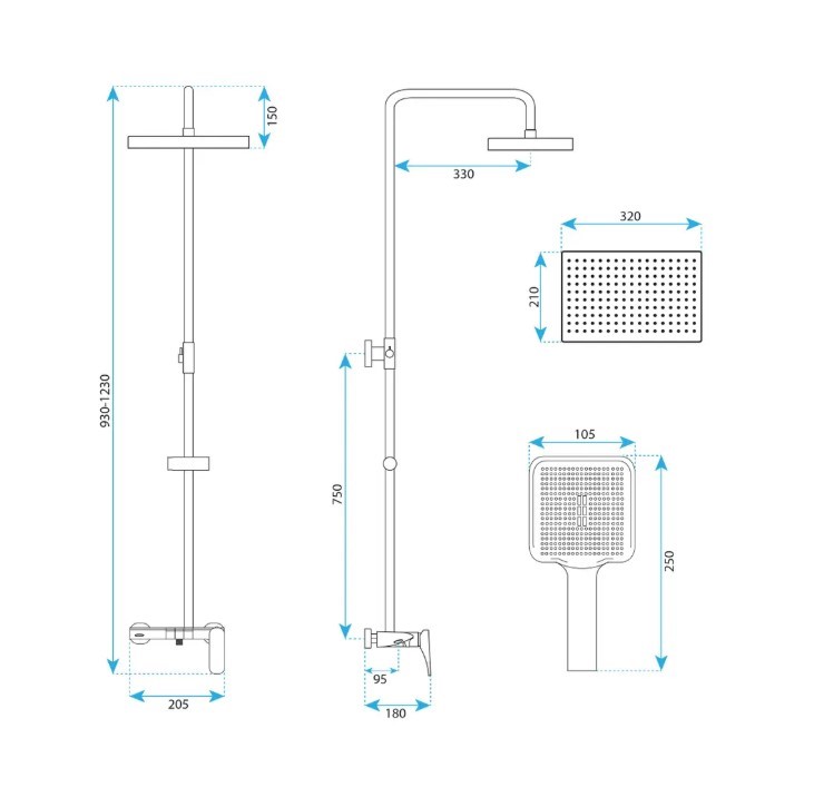 Prostokątna deszczownica – zapewnia relaksujący i równomierny strumień wody.