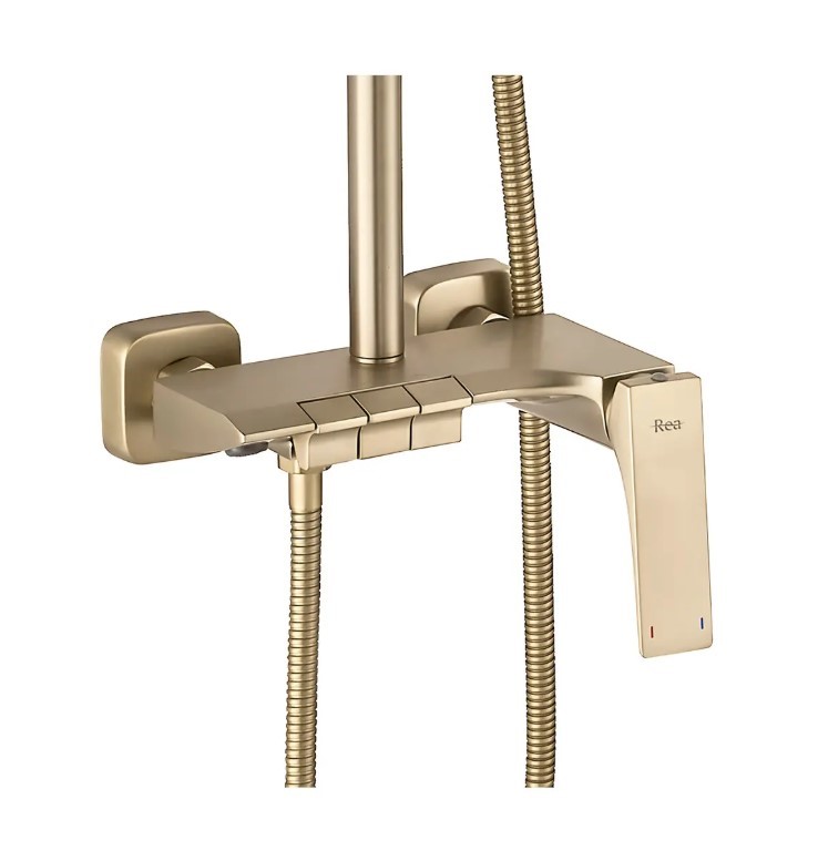 Zestaw prysznicowy natynkowy Rea Joe Złoty Szczotkowany to doskonały wybór dla każdego, kto ceni minimalizm, jakość i ponadczasowy design. Perfekcyjne w każdym detalu, dzięki eleganckiemu, szczotkowanemu wykończeniu będzie stylową ozdobą Twojej łazienki.