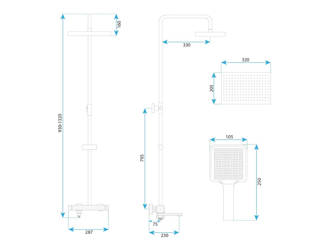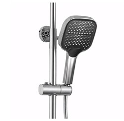 Regulowany drążek – pozwala na dostosowanie wysokości deszczownicy do wzrostu użytkowników, zapewniając komfort kąpieli.