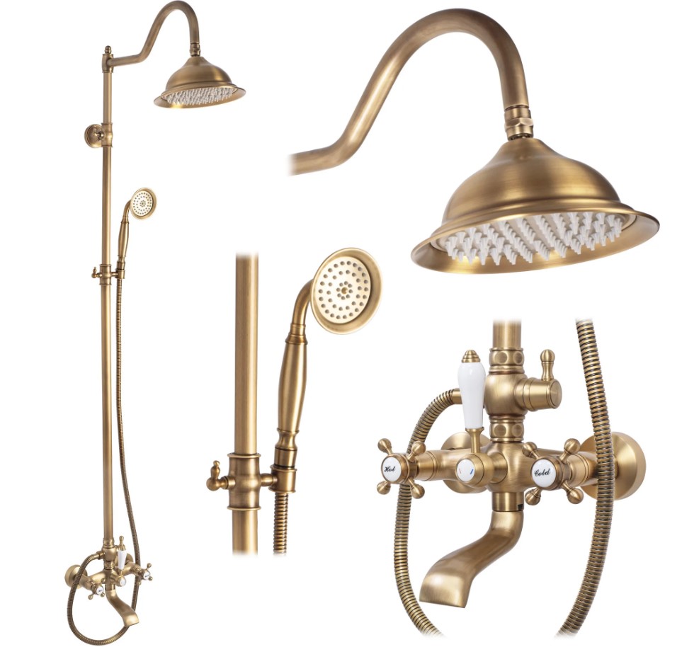 W zestawie: bateria, deszczownica, ramię do deszczownicy, wylewka, wąż 1500 mm, słuchawka, uchwyt na słuchawkę, maskownice