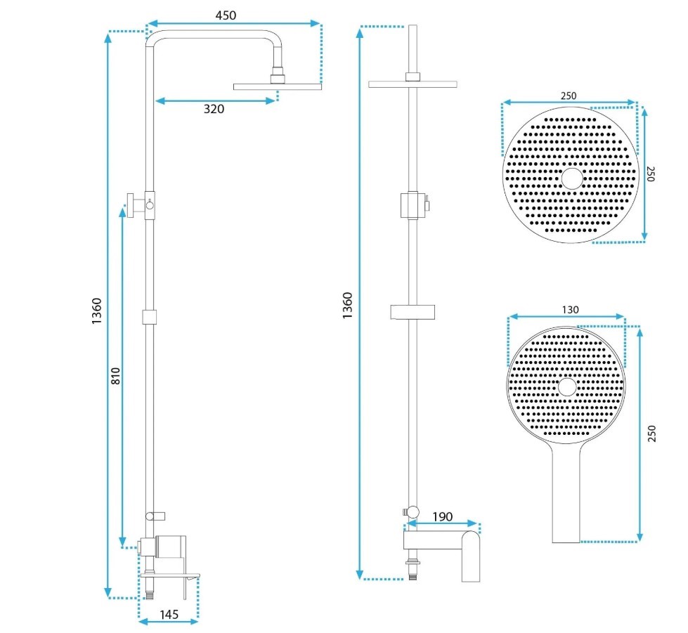 Pamiętaj, aby przed zakupem zapoznać się z rysunkiem technicznym zestawu prysznicowego. Upewnij się, że wysokość będzie idealnie dopasowana do Twoich potrzeb!